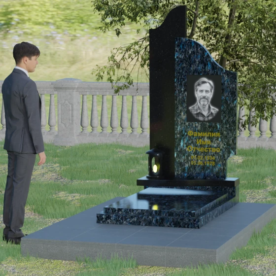 Для этой формы идеально подходит классическое расположение портрета на левой, более широкой части стелы. Черная зеркальная поверхность Габбро-диабаза позволяет нанести лазерную гравировку высочайшей четкости, где будут видны малейшие черты лица и детали одежды. Текст и эпитафии гармонично смотрятся как в традиционном исполнении, так и с применением сусального золота или глубокой вырубки знаков.