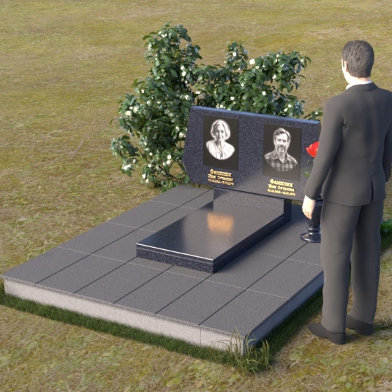 Представляем вам ритуальное изделие – памятник на могилу (Артикул: ПГ018), архитектурное решение, в котором строгость линий сочетается с глубоким символизмом. Это не просто надгробие, а осязаемое воплощение уважения и вечной памяти об ушедшем человеке. Стела, выполненная в форме сдержанного прямоугольника, слегка расширяющегося кверху, символизирует восхождение души к небесам. Грани камня тщательно обработаны, создавая игру света и тени, подчеркивающую монументальность и значимость этого места памяти. Слева и справа, верхние углы стелы имеют элегантные скосы, смягчающие строгость формы и придающие ей утонченность. На зеркальной поверхности камня выгравированы портреты усопших, их имена и даты жизни, выполненные с безупречной точностью и вниманием к деталям. Под портретами располагаются лаконичные надписи, выполненные строгим шрифтом, добавляющие памятнику сдержанности и достоинства. Дополнительная горизонтальная плита, расположенная перед стелой, создает ощущение завершенности и служит местом для возложения цветов или свечей. Этот элемент композиции выполнен в той же стилистике, что и основная стела, поддерживая общую гармонию и пропорциональность мемориального комплекса.