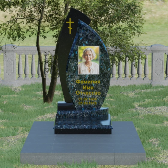 Кому подойдет: Данная модель является универсальным и в то же время глубоко индивидуальным решением. Благодаря мягким изгибам центральной части, она идеально подходит для оформления женских захоронений, воплощая нежность и материнскую любовь. В то же время строгая внешняя рама и возможность исполнения в темных, маскулинных тонах (например, в черном Габбро или зеленом граните Балтик грин) делают этот гранитный монумент достойным выбором для мужчины — отца, мужа или брата. Это памятник для тех, кто ценит современный стиль, надежность и хочет выделить место памяти среди типовых решений за счет уникальной формы и премиального сочетания материалов.