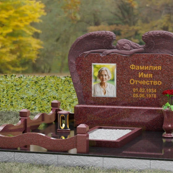 Функциональные элементы декора — массивная гранитная лампада и классическая ваза — выполнены в едином стиле с основным монументом. Зеркальная полировка всех поверхностей не только придает изделию «дорогой», благородный вид, но и служит залогом долговечности: такая обработка закрывает поры камня, делая его неуязвимым для дождей, морозов и перепадов температур. Гранит сохранит свой первозданный блеск на столетия, не требуя сложного ухода.