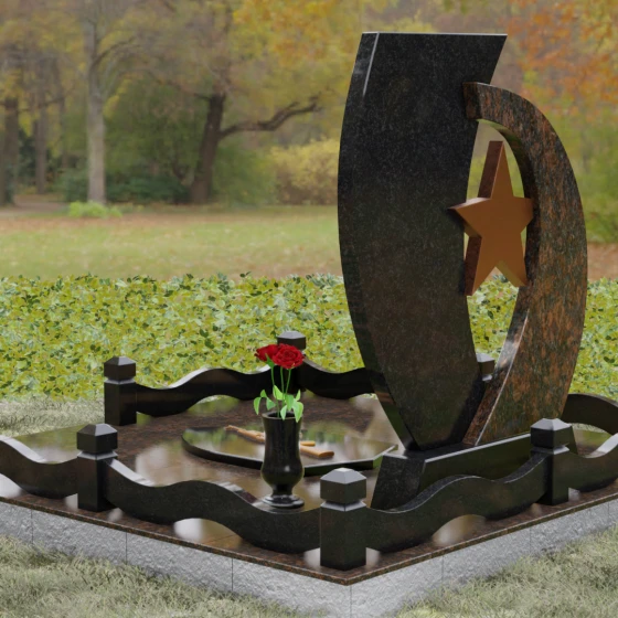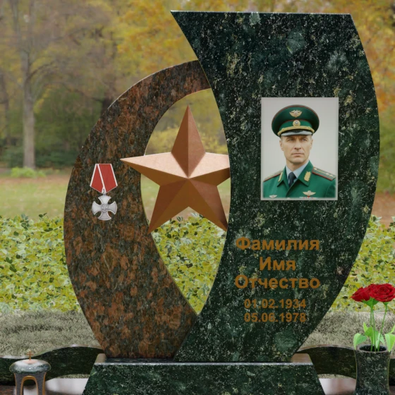 Кому подойдет: Данный мемориальный комплекс спроектирован для увековечивания памяти мужчин, чья жизнь была связана с воинским долгом, государственной службой или героическими поступками. Он станет достойным символом последнего пристанища для ветерана, кадрового офицера или человека с твердым характером. Армейская символика в сочетании с изысканным европейским стилем благоустройства (каменная ваза для живых цветов, лаконичная лампада на постаменте) подчеркивает уважение семьи к заслугам и личным качествам дорогого человека.