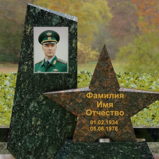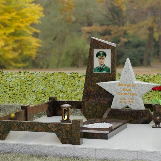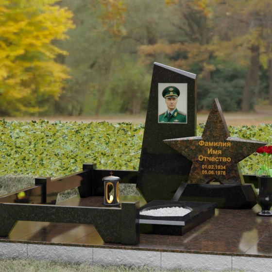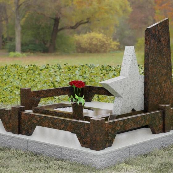 Кому подойдет: Это ритуальное изделие станет достойным выбором для увековечивания памяти военного, ветерана боевых действий или человека, чья профессиональная деятельность была связана с защитой Отечества. Символика звезды в сочетании со строгими линиями олицетворяет мужество, честь и верность идеалам. Благодаря своей величественной форме и архитектурной сложности, такой ансамбль подойдет для установки на почетном месте захоронения главы семьи, подчеркивая его высокий статус и значимость для потомков.