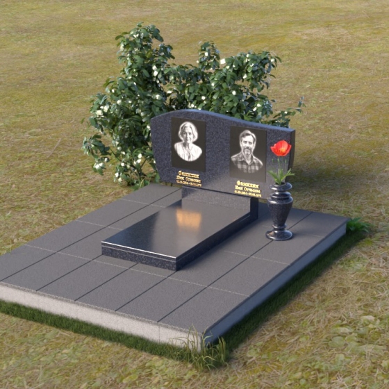 Оформление: Для этой формы стелы рекомендуется выбирать портреты с четкими контурами, чтобы гравировка максимально точно передала образ усопшего. Имена и даты рождения можно разместить под портретами, используя элегантный шрифт с золотым напылением, что придаст ритуальному изделию дополнительную торжественность.