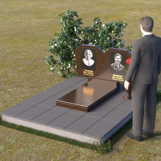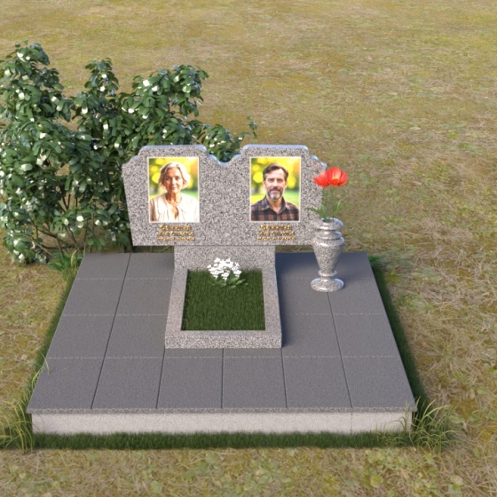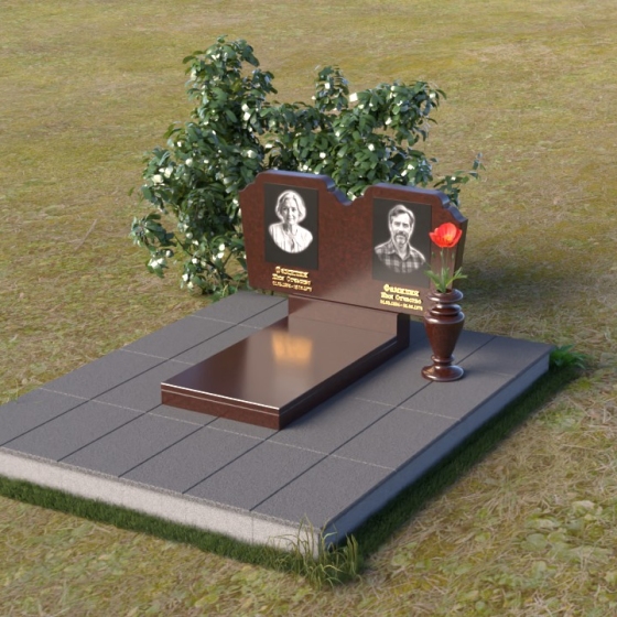 Форма стелы идеально подходит для размещения портретов усопших. Благодаря достаточно большой площади поверхности, можно разместить не только портреты, но и эпитафии, отражающие самые важные черты характера и жизненные ценности. Текст, выполненный методом гравировки, будет четким и долговечным. Вертикальное расположение стел позволяет акцентировать внимание на лицах ушедших, создавая ощущение их присутствия рядом. Наличие подставки под вазу позволяет украсить место захоронения живыми или искусственными цветами, которые добавят красок и жизни в мемориальную композицию. Красная роза, изображенная на одной из стел, символизирует любовь и память, которые навсегда останутся в сердцах близких.